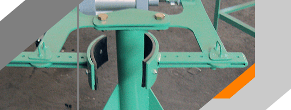 Columna principal construidade caño diámetro 120mm y ½” de pared, una planchuela de grandes dimensiones de ¼” de espesor en la base, soldada a la columna con 2 planchuelas triangulares. En la zona superior, presenta un soporte que sujeta 2 planchuelas con forma especial de ½” de espesor, que accionadas con un pistón neumático, permiten abrir y cerrar las mordazas, fijadas en el otro extremo de dichas planchuelas con tornillos. Las mordazas tienen un soporte con varias perforaciones, que posibilitan variar la ubicación de las mismas para ajustar distintos diámetros de cilindros.