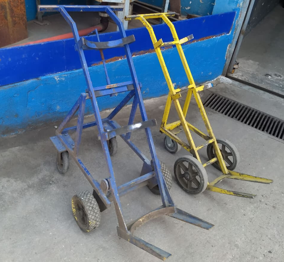 Construida con caño de sección rectangular 30 x 20 x 2,5mm, se traslada apoyando en 3 ruedas de fundición y caucho, 2 fijas laterales de diámetro 250mm y una rueda loca más pequeña en la parte posterior. Tiene 2 uñas construidas con barra redonda de diámetro 20mm verticalizando la carreta, permite colocar las uñas debajo del fondo del cilindro, levantarlo y trasladarlo.